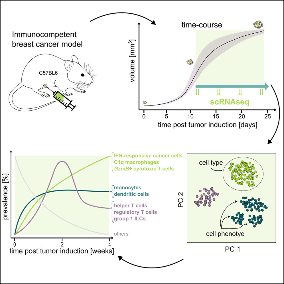 Multi-cellular phenotypic dynamics during the progression of an immunocompetent breast cancer model, Louise Gsell, Spencer S. Watson, Iva Sutevski, Matteo Massara, Klara Soukup, Alper Eroglu, Jeff E. Mold, Antony Cougnoux, Johanna A. Joyce, Jean Hausser. iScience 2025